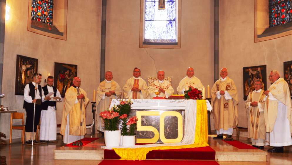 Zlatni jubilej, 50 godina postojanja zajednica u Gelsenkirchenu i Bochumu proslavljen je misnim slavljima u subotu, 3. i nedjelju 4. lipnja. Mise je predvodio srijemski biskup koadjutor Fabijan Svalina.